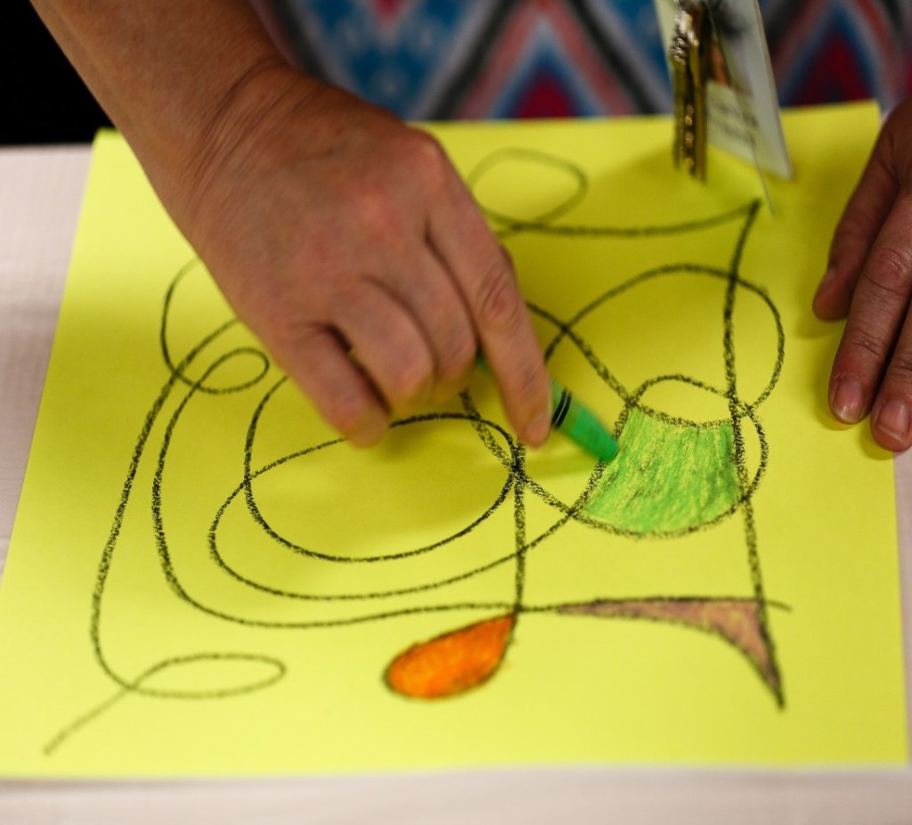 Take a large sheet of paper and a soft graphite stickor marker and cover the paper with scribbling. Make big swirls, tight curls, loops and zigzags until the paper is covered.