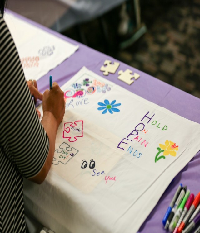 This is one example of an Arts Festival that was held in Philadelphia in 2016 as an adjunct to the N.A.P.S. conference. Working in collaboration with the Office of Behavioral Health in Philadelphia, the art festival was held in the office and accomplished with donations. Tables were set up for different types of activities, such as collage, pillowcase painting, mandalas, painting, ceramic murals, and poetry. Approx 80 people showed up at different times of the day. With a little organization and collaboration, it is possible to set up an arts festival or arts workshop for your local community.