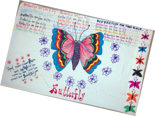 Creative colorful hand expressions may include; poetry, pictures, values, journeys, etc. Reflect as a reminder of where you were, where you are going, and turn any sadness into happiness