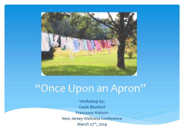 This presentation on the history, definition, and purpose of the apron was a workshop on creativity by: Gayle Bluebird and Franzswa Watson for the 2014 New Jersey Wellness Conference.