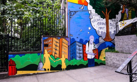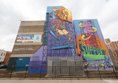 The NYC Mural Arts Project strives to destigmatize mental illness through our collaborative mural making process. We create spaces to discuss mental health and foster new social interactions between people living with mental health conditions and fellow community members. Watch a Video. A similar long-term project has been established in Philadelphia.