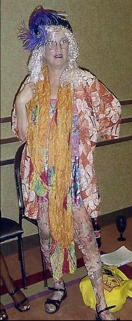 “Someone once asked me why I created Henrietta. I think it was one of my most daring moments in Henriettas history. She (Henrietta) had breast pasties, with her otherwise stockings and feathers. It was for a celebration at the Office where I was the Director of Peer Services. I honestly didn’t have an answer except that I always wanted to have boobs, to put it bluntly, and Henrietta fit the bill. Plus, it was everything I ever wanted to be, outrageous. Henrietta had a condom that she threw out at the end of the show and wouldn’t you know a high-level administrator caught it. I never got it back. I didn’t lose my job and the next day business as usual. Being an appropriately dressed Peer Director of consumer services.”